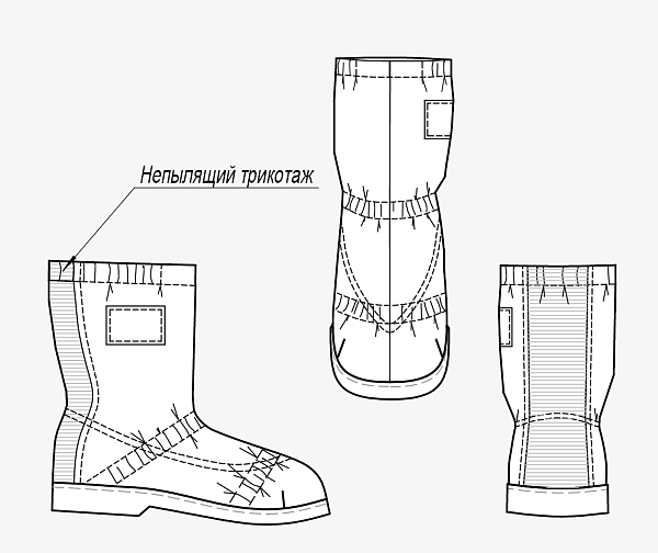 Данные бахилы-сапоги надевают на носок, поэтому использование дополнительной обуви не требуется. Для удобства одевания на задней части бахил предусмотрена вставка из плотного безворсового трикотажного полотна.