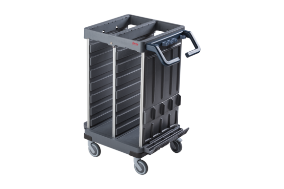- Процесс уборки становится эффективнее – новый уровень эргономики и увеличенная вместимость тележки;