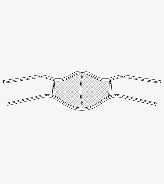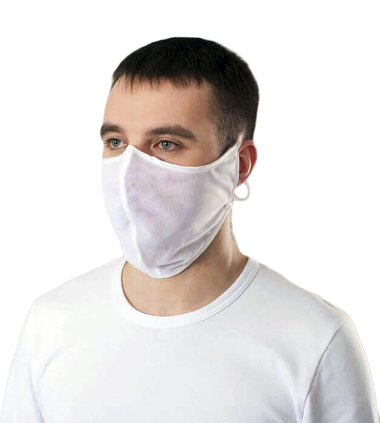Маска многоразовая на модели Б-191 состоит из трёх слоёв фильтра. Носовой фиксатор расположен на переносице. Завязки фиксируются на затылке. Изделие может быть изготовлено из полиамидного трикотажного полотна.