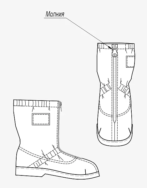 - Нашивка с надписью «Одежда технологическая для персонала чистых помещений» на внешней стороне бахил.