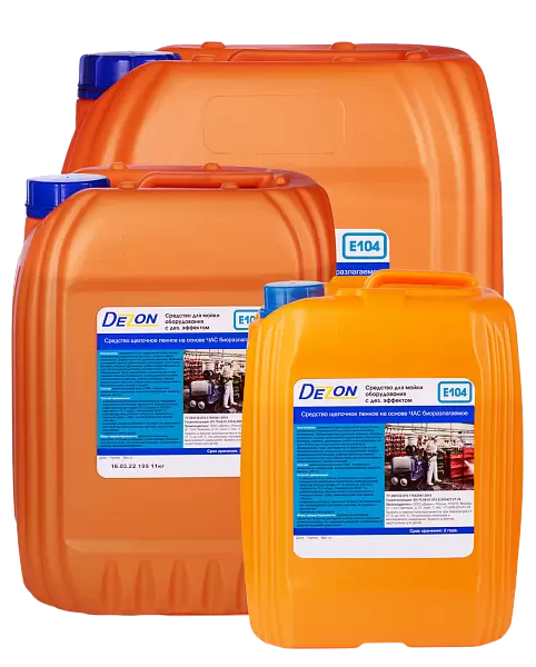 Дезон E104 обладает высоким моющим, обезжиривающим и обеззараживающим действием за счет высокого уровня рН и синергизма четвертичных аммониевых соединений (ЧАС) и активных щелочных добавок. Средство хорошо удаляет белковые загрязнения, жиры, животные и растительные масла и другие органические загрязнения, уничтожает бактерии, плесень, дрожжевые грибки и предотвращает их рост. Рекомендуется использовать для комплексной пенной санитарной мойки пищевого технологического оборудования, емкостей, трубопроводов, транспортерных лент, линий розлива и упаковки, инвентаря, инструментов, для уборки производственных помещений на предприятиях пищевой и перерабатывающей промышленности (в т.ч. молокоперерабатывающей, масложировой, птице-, мясо- , рыба-перерабатывающей, кондитерской, консервной и пиво-безалкогольной промышленности), общественного питания.