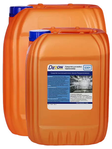 Дезон E301 для очистки коптильного оборудования, санитарной мойки различных объектов и поверхностей. Обладает высоким моющим, обезжиривающим и обеззараживающим действием за счет высокого уровня рН, хорошо удаляет стойкие отложения дымовой смолы, копоти, нагаров, жира и белка, и других органических загрязнений, уничтожает бактерии и предотвращает их рост, работает в воде любой жесткости, в холодной воде.