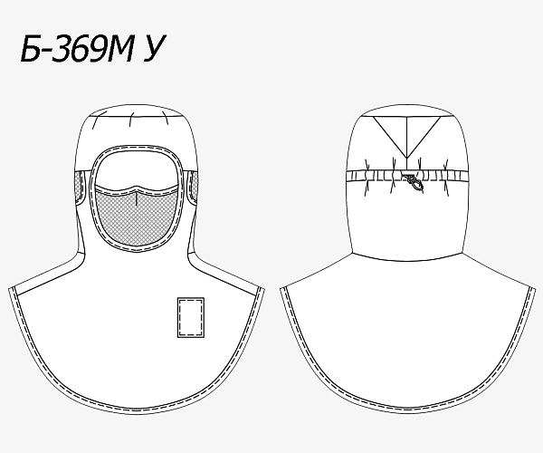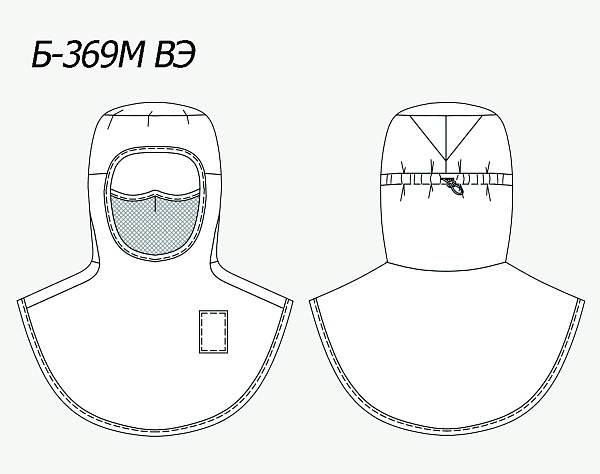 Шлем-маска Б-369М предназначена для использования персоналом в помещениях классов чистоты 3-8 ИСО (зоны A-С по GMP). Шлем — головной убор, плотно облегающий голову и полностью закрывающий лицо ниже глаз. Под шлем надевается одноразовый зажим — берет, закрывающий и удерживающий волосы. На внешней стороне перелины настрочена нашивка с надписью «Одежда технологическая для персонала чистых помещений», с таблицей циклов обработки и датой выпуска изделия. На нашивке имеется свободное место для нанесения потребителем знаков идентификации персонала.