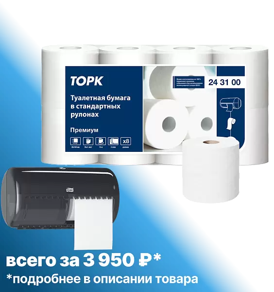 При покупке большой упаковки туалетной бумаги Торк T4 Премиум вы получите диспенсер Торк T4 Элевейшн всего за 3950!