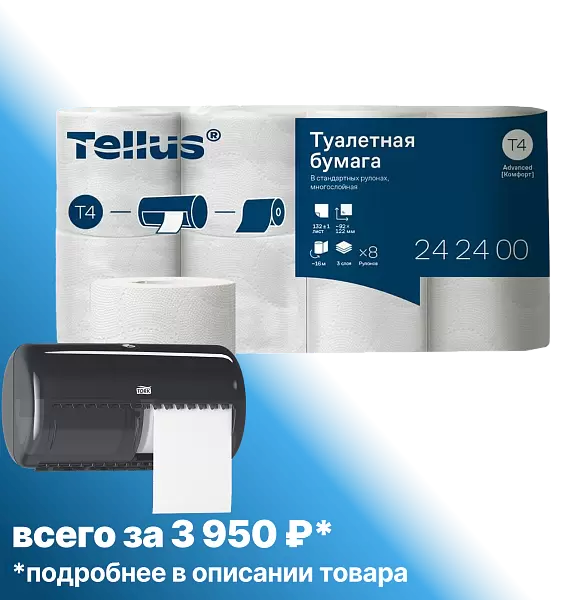 При покупке большой упаковки туалетной бумаги Торк T4 Tellus Комфорт вы получите диспенсер Торк T4 Элевейшн всего за 3950!