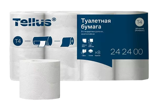 Трёхслойная туалетная бумага в рулоне TellusТорк T4 Комфорт (242400) обеспечивает домашний комфорт вдали от дома. Эта туалетная бумага предлагает отличное соотношение цены и качества для туалетных комнат с низкой посещаемостью.