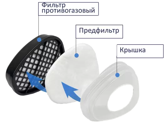 Варианты сменных фильтров для использования с полумаской ВМ 6000: