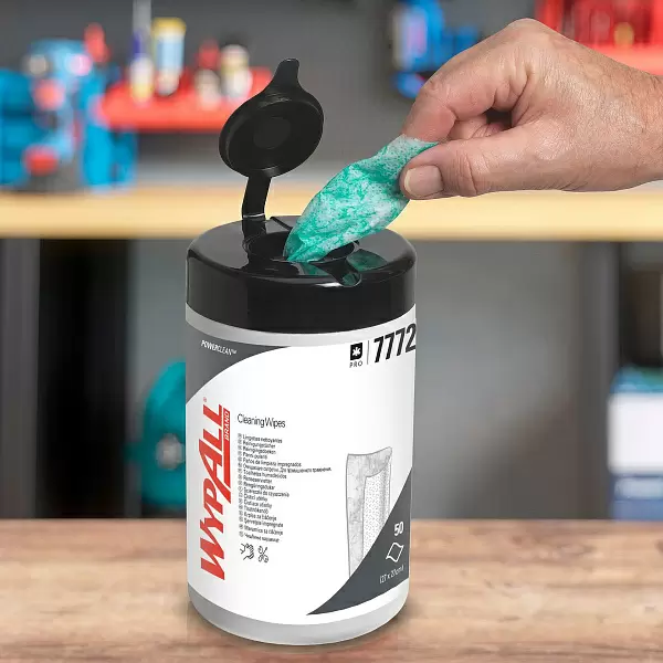 Одноразовые протирочные салфетки WypAll в тубе с двумя рабочими поверхностями для наиболее эффективной очистки. Рельефная сторона, пропитанная моющим средством предназначена для удаления въевшейся грязи, а оборотная сторона служит для устранения остаточных загрязнений.